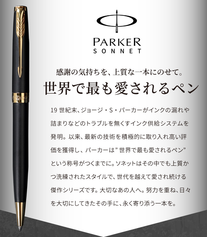 退職祝い 記念品 名入れ プレゼント 名前入り ギフト PARKER ソネット マットブラック SONNET ボールペン パーカー 就職祝い 男性 高級 定年 父 昇進