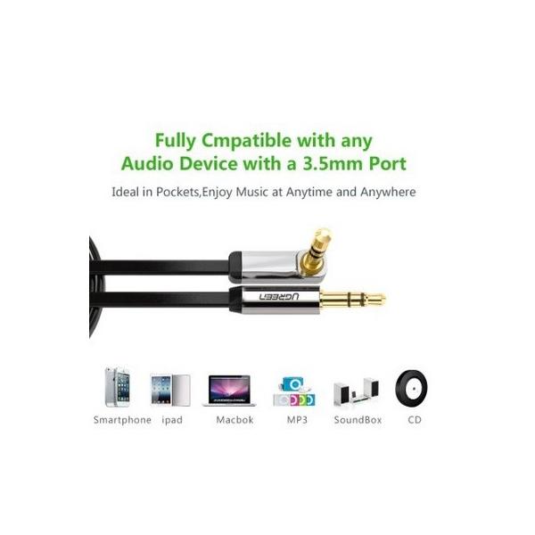 オーディオステレオケーブル AUX接続用ケーブル L字 (1m) 3.5mm フラットケーブル Ugreen ■
