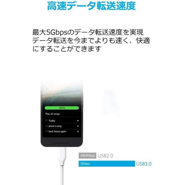 USB-Cポートからフルスピードでスマートフォンやタブレットに充電可能。HD映画を5Gbpsのハイスピード転送により、数秒で転送できます(※Nexus 5X / 6Pへも充電は可能ですが、急速充電には対応しておりません)。