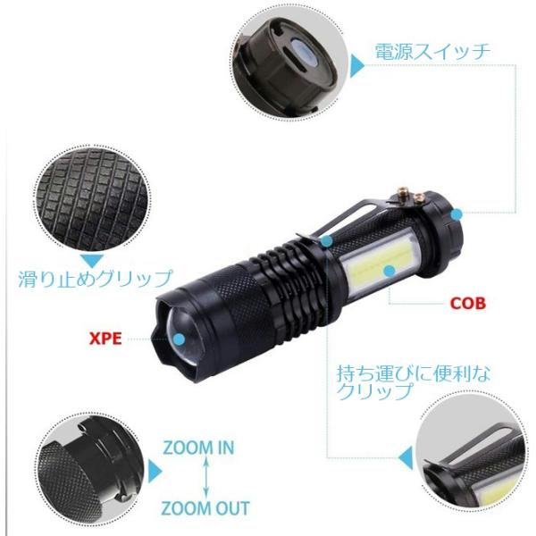 懐中電灯 LED 強力 超小型 高輝度 USB充電式 ハンディライト XPE+COB 防災 キャンプ 作業灯 地震災害 停電灯 スポットライト 常備灯 防犯 SOS点滅
