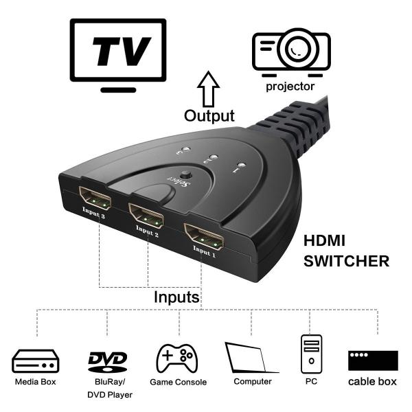 HDMI 3入力1出力で、PS3,PS4,Xbox,Apple TV, PS3,PS4, TV Box, ROKU 4, Blu-Ray/DVD Playerなどに接続できます。
