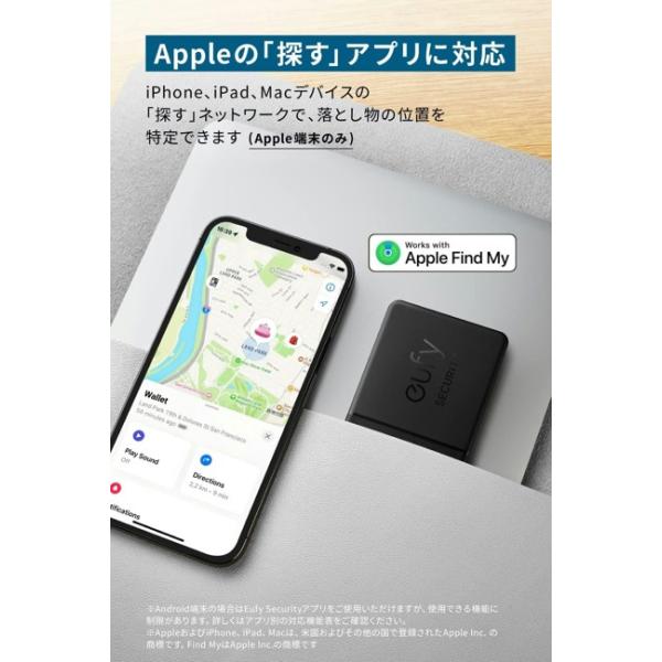 「探す」アプリはApple端末のみに対応しております。Android端末ユーザーの方はEufy Secuirtyアプリご利用いただけますが、機能に制限があります。