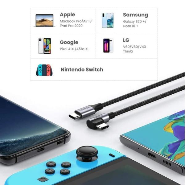 Type-C to type-Cケーブル PD対応 L字 iphone15 16対応 60W/3A (1.0 / 0.5m) 急速充電 断線防止 アンドロイド スマホ iPad Macbook その他USB-C機器 UGREEN ■