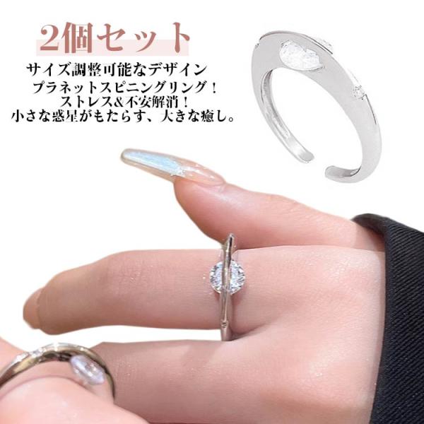 フィジェットリング おしゃれ 指輪 ストレス解消 プラネットスピニングリング 不安解消ジュエリー キュービックジルコニア レディース メンズ リング