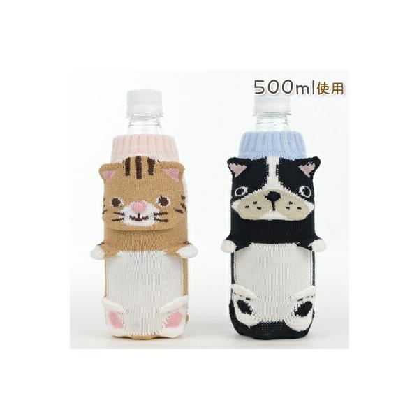 【2柄セット】アニマル ペットボトルカバー 編み 靴下 わんこ にゃんこ セット かわいい おしゃれ キャラクター 犬 猫 ボトルカバー ペットボトルホルダー