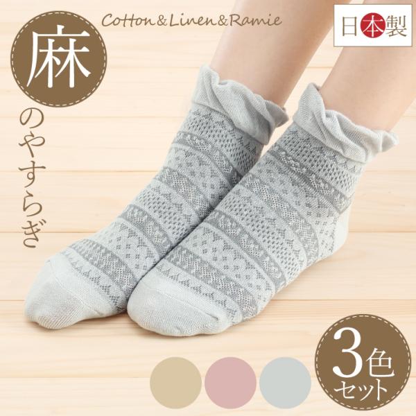 麻 のやすらぎ アンクレットソックス 3足組 靴下 レディース セット クルーソックス 日本製 おしゃれ お洒落 かわいい 可愛い 婦人 人気 おすすめ ランキング