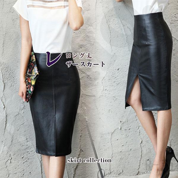 レザースカート 膝丈スカート レディース タイトスカート 秋冬 PU革 通勤 OL オフィス ハイウエスト 韓国風 ファッション お呼ばれ 同窓会