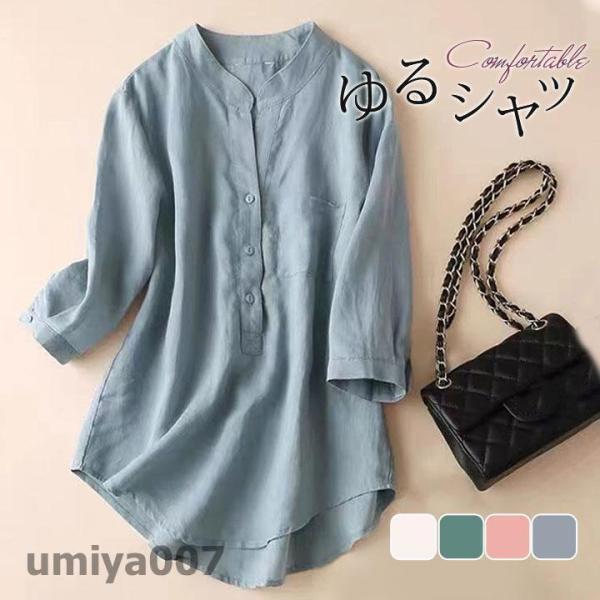 シャツ レディース ブラウス ス チュニック 7分袖 綿麻 麻混 前開き 冷房対策 カジュアル 着痩せ 春秋 羽織り 着痩せ 体型カバー