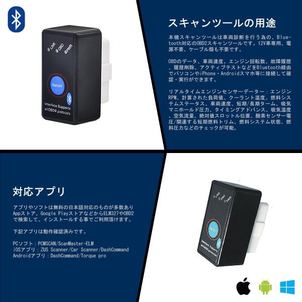 ELM327 Bluetooth OBD2汎用スキャンツール V1.5 ON/OFFスイッチ付き iOS Android PC対応 カー情報診断ツール OBDII マルチメーター 送料無料 1ヶ月保証