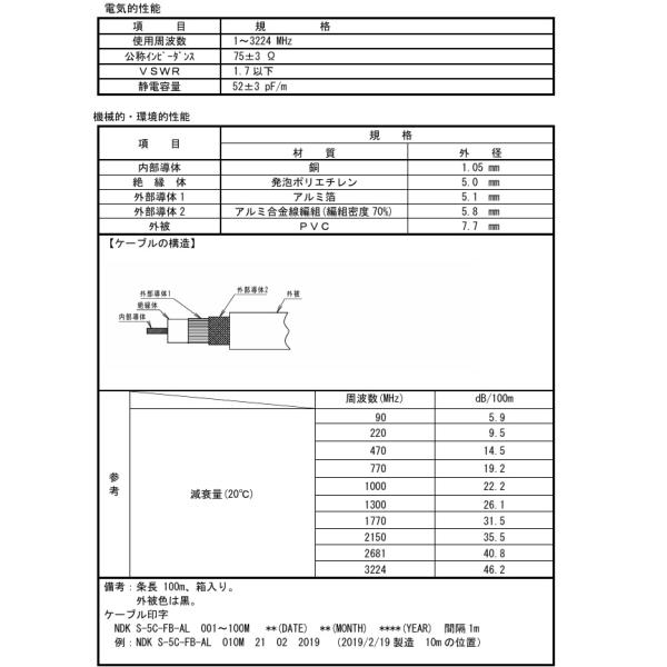 二幸電気工業 同軸ケーブル S-5C-FB-AL 100m巻 黒 [NDK000157]