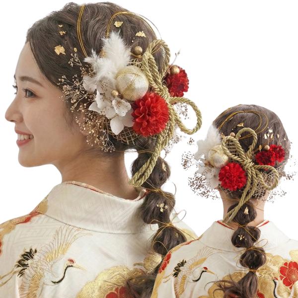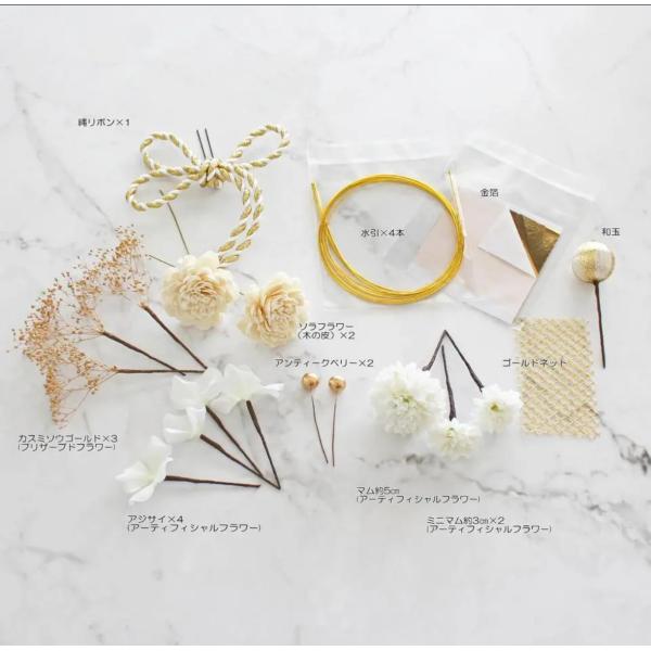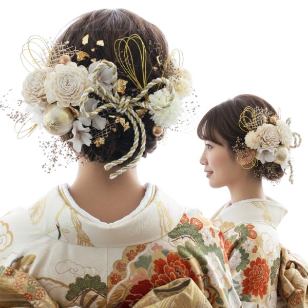 成人式 卒業式 結婚式 七五三 前撮り 袴 振袖 ウェディング かすみ草 ドライフラワー 金箔 水引 パール