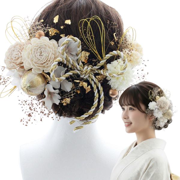 卒業式 髪飾り 袴 成人式 振袖 水引 金箔 和玉 白 ゴールド 高級 造花 960