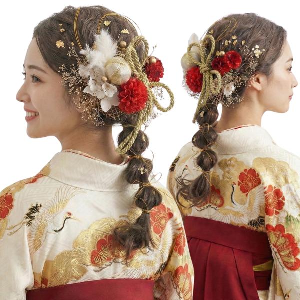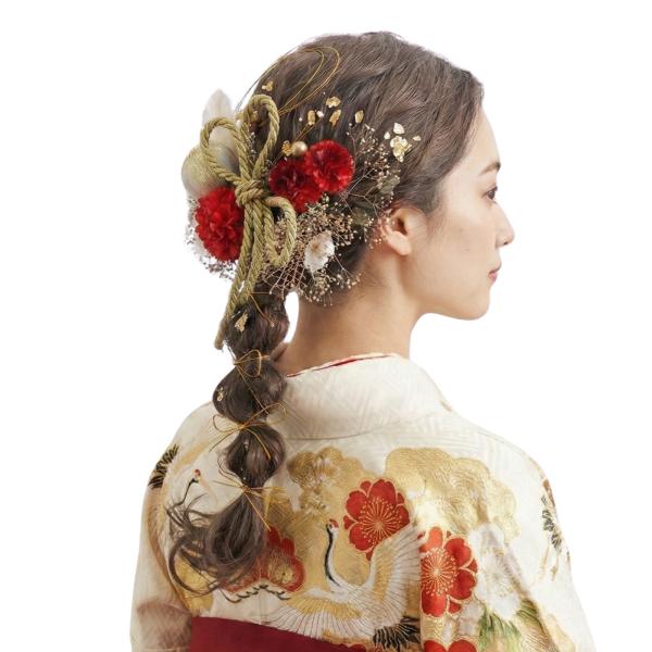 成人式 卒業式 結婚式 七五三 前撮り 袴 振袖 ウェディング かすみ草 ドライフラワー 金箔 水引 パール