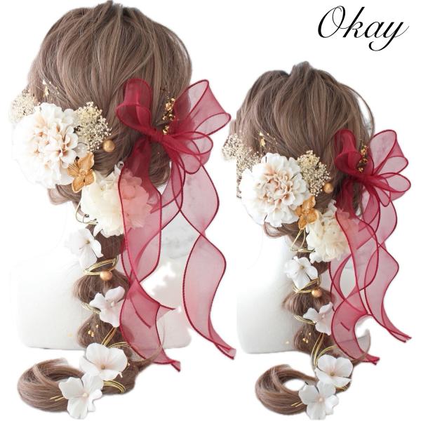 髪飾り 成人式 卒業式 結婚式 前撮り七五三 振袖 ウェディング袴 ドレス 和装 入学式 造花 高級ヘアアクセ 水引き 金箔 水引 和玉 白 ゴールドベロアリボン3146
