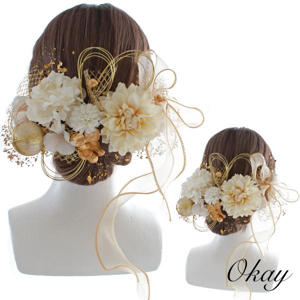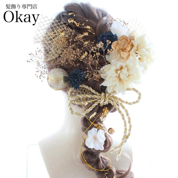 卒業式 髪飾り 袴 成人式 振袖 水引 金箔 和玉 白 ゴールド 高級 造花 960