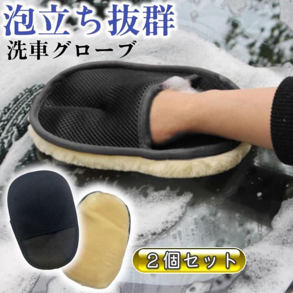 洗車ムートングローブ 2個セット カーウォッシュ 洗車手袋 洗車用グローブ 吸水便利 ブラック カー用品 ワックス