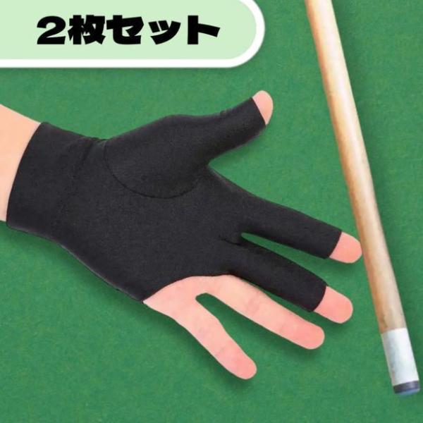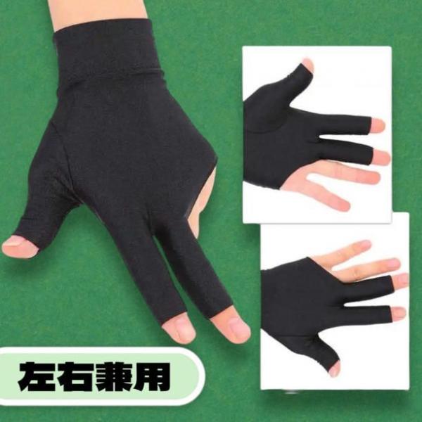 ビリヤード グローブ 手袋 2枚セット 左右兼用 フリーサイズ 黒 スパンデックス 汗対策 通気性 3本指 グリップ向上 男性 女性 両用