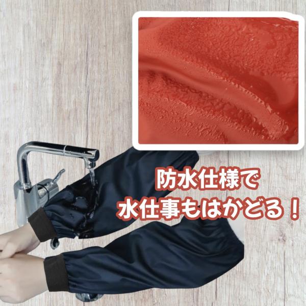 防水・撥水仕様のアームカバーで、水仕事や作業時の濡れ防止、汚れ防止に役立ちます。<br>