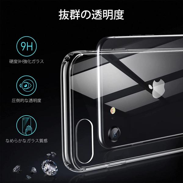 ESR iPhone SE ケース SE 第3世代/第2世代 iPhone8 7対応 ガラスケース 9H背面 ストラップホール 傷に強い 強化ガラス 耐衝撃 衝撃吸収 クリア