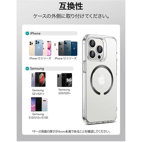 ESR HaloLock ユニバーサルリング 磁気ワイヤレス充電対応キット MagSafe対応メタルリング iPhone 14/14 Plus/14 Pro/14 Pro Max/13/13 Pro/13 mini/13 Pro Max/12/12 mini/12 Pro/12 Pro Max対応 Samsung Galaxy対応 2個入り ブラック・シルバー ESR HaloLock Ring【国内正規品】