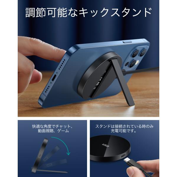 ESR HaloLockキックスタンドワイヤレス充電器 MagSafe対応 iPhone 14/13/12シリーズ対応 マグネットケース対応 1.5 mケーブル付属 ケーブルの取り外し可能