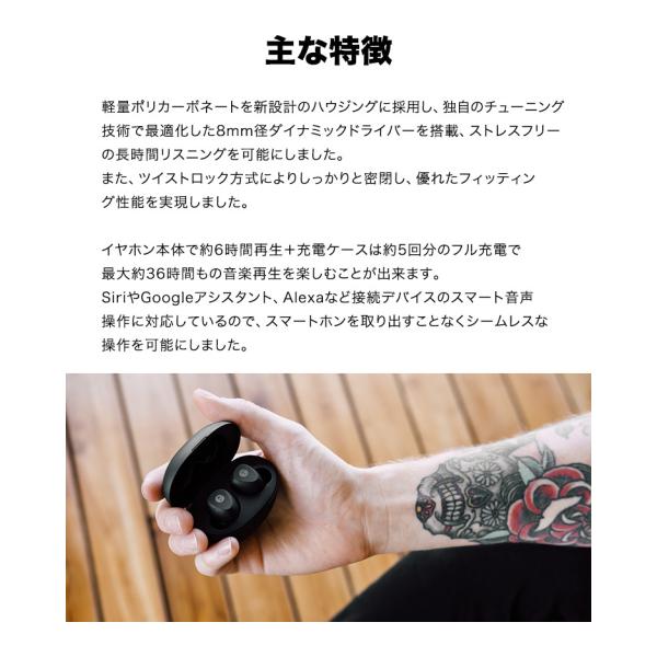 バッテリー:最大36時間(本体6時間+充電ケースで5回フル充電可能)