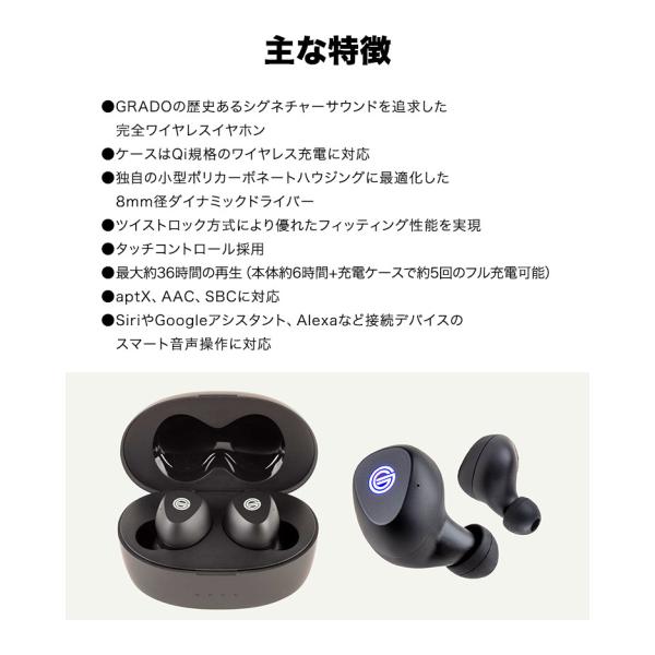 GRADO(グラド) GT220 aptX AAC イヤホン ワイヤレス 完全ワイヤレスイヤホン ワイヤレスヘッドホン 軽量 内蔵マイク
