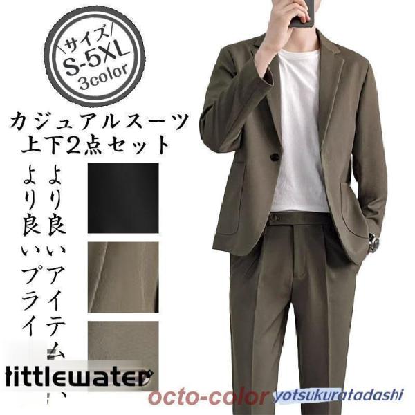 スーツ メンズ セットアップ 上下セット ストレッチ テーラードジャケット パンツ 無地 秋冬 おしゃれ カジュアルスーツ オフィス 仕事 通勤