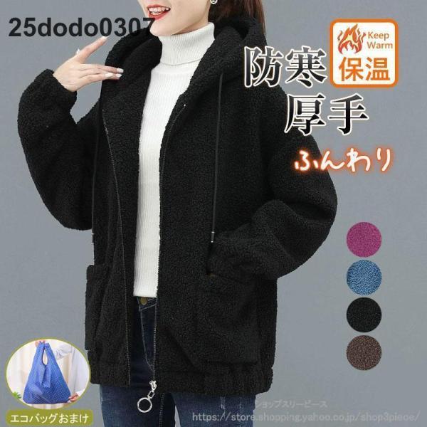 フリースジャケット レディース ボア パーカー ブルゾン アウター もこもこ ファー ゆったり 厚手 暖か 防寒 冬 可愛い 柔らかい