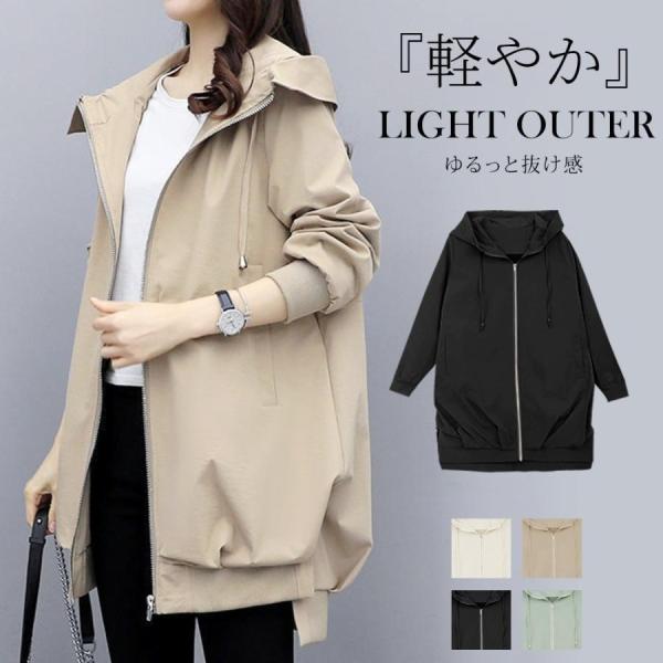 撥水加工 マウンテンパーカー アウター UV加工 ブルゾン レディース 長め丈裏地あり フード付き 軽量 通気 春 秋 アウター パーカー ブルゾン
