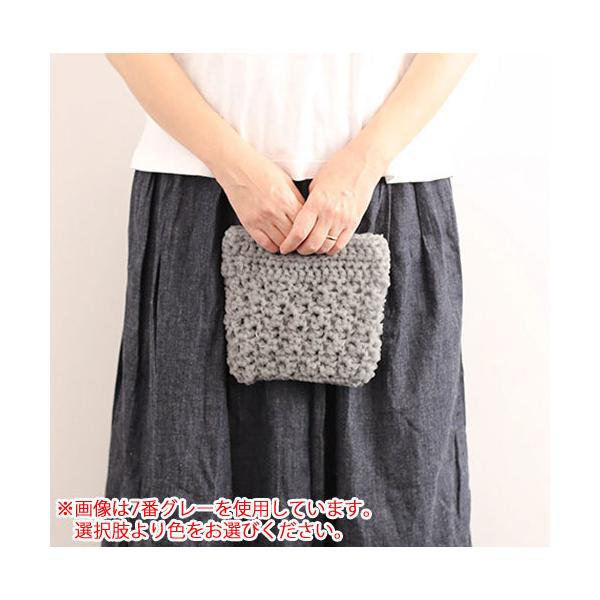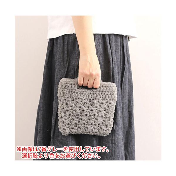 TUBEは、発色の良いビビットな色目のカラフルな糸。釣り糸のように毛羽のないナイロンの糸がチューブ状に編まれていて一本の糸になっています。編み上がりは伸びにくいのでバッグやポーチなどの袋小物を編むのにちょうど良い素材。水に濡れても大丈夫なので夏のレジャーやおうちの水回りでも使えます。シンプルなデザインでも素材の違いがよく映えるちょっと変わった糸です。