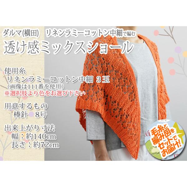 ダルマ(横田) 透け感ミックスショール 着分セット(リネンラミーコットン 【中細】3玉・編図)【着分18番】