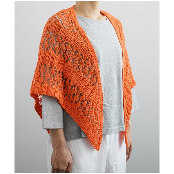 春夏シーズンに身に付けても編地が厚手になりすぎない中細タイプの糸で、ショールなどの小物からウェアまで軽やかなニットに仕上がります。