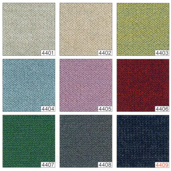近似色の杢糸にカバーリングしたカラーラメは、とてもソフトな極細タイプで細やかな光が美しく、ラメ感を感じさせない風合いです。
