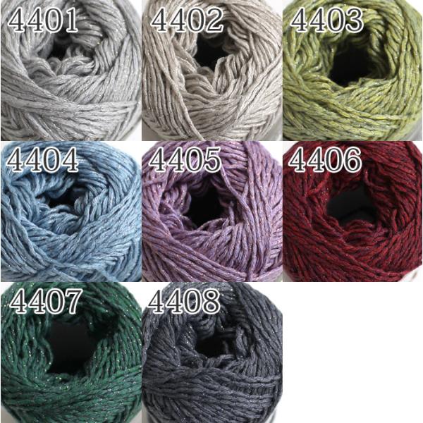 繊細な編目の中にラメの輝きが散りばめられた、初秋から活躍するエレガントヤーン。