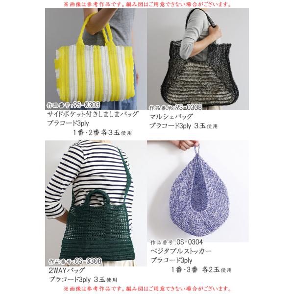 プラスチック素材の漁網用の糸を、何本か合わせ撚った糸。以前販売されていた「マテリアルコード」よりも柔らかくなり、編みやすく改善されています。3plyは少し細めのタイプなので繊細な表現におすすめです。天然素材の良さがあるように、プラスチック素材の持つ良さもあります。独特な質感を楽しんでみてください。