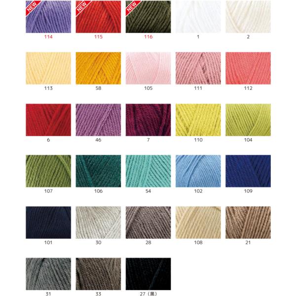 アクリル100% とは思えない、柔らかい肌触りと光沢が特長の大人気糸です。