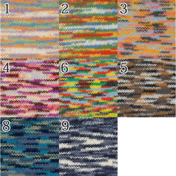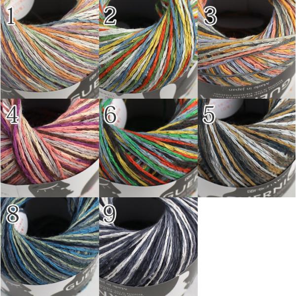 綿糸とリネン糸を引きそろえてリリヤーンに編み立て、プリント染めした糸です。