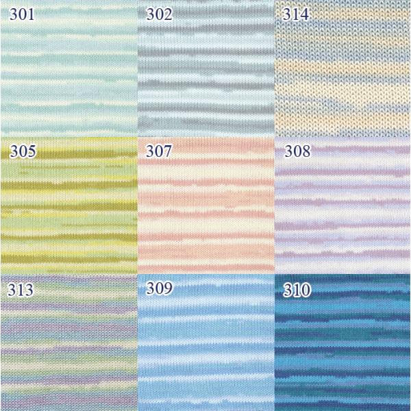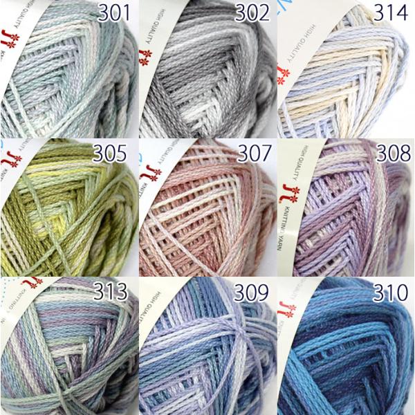 春夏の定番商品ウォッシュコットンの「日本の涼」をカラーテーマにしたグラデーションタイプ。棒針・かぎ針ともに初心者から上級者まで幅広くお使いいただけます。また、春夏商品にはうれしい、洗濯機で丸洗いができる素材です。