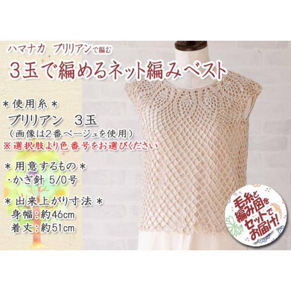 ハマナカ 3玉で編めるネット編みベスト 着分セット(ブリリアン3玉・編図)【着分67番】
