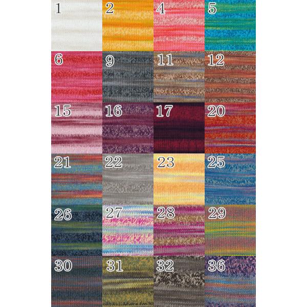 雑貨感覚のかわいい毛糸です。ウェアカラーからポップなインテリアカラーまで、小物作りを意識したカラーバリエーション。自然とかすりと杢が切り替わり、ビギナーでも簡単でおしゃれな編みあがり。