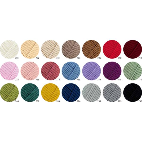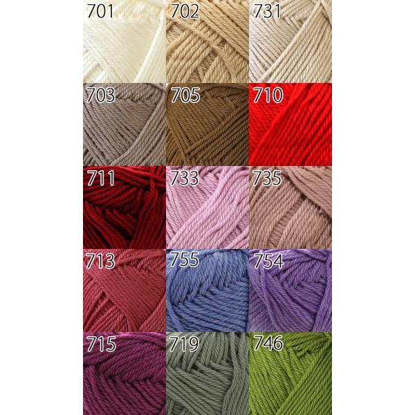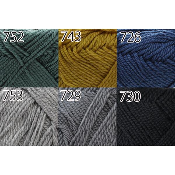 ※エクシードウールFL合太は糸の染色を原料段階で染める「トップ染め」にて製造されていましたが、製造方法の都合により、エクシードウールFL合太の700番台は、原料を糸に加工してから色を付ける「糸染め」に変更となりました。