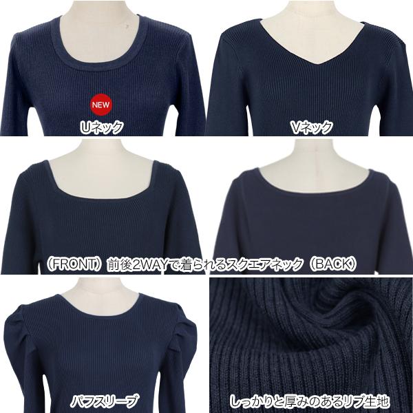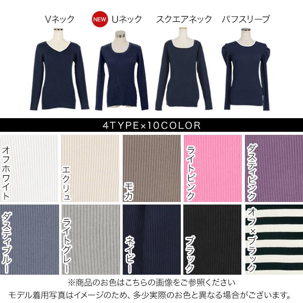リブニット レディース 長袖 クルーネック Vネック 秋 冬 40代 50代 30代 C2717送料無料