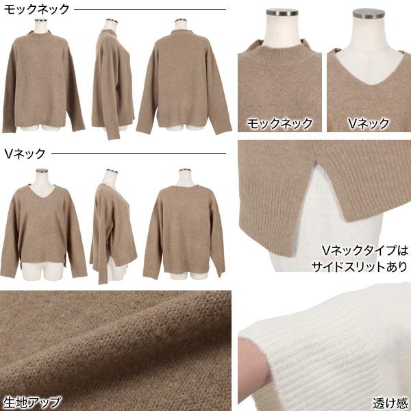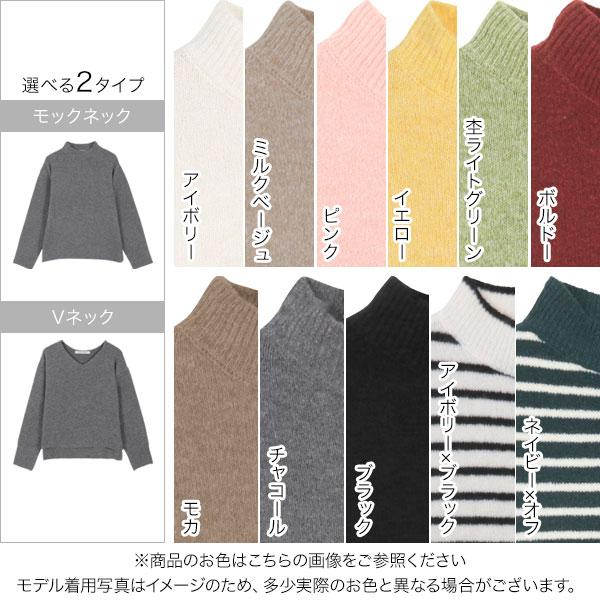 ウォッシャブルVネック or モックネックスフレニットトップス