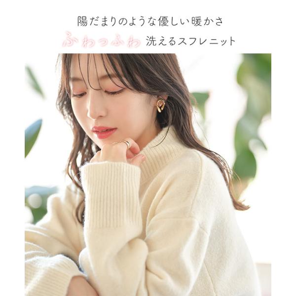 ニット トップス レディース モックネック 秋 冬 洗える ハイネック ゆったり スフレ Lサイズ イージーケア C6301