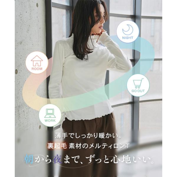 裏起毛 ロンT レディース ハイネック 50代 40代 あったか メルティ メロウ 裏微起毛 暖かい C7812