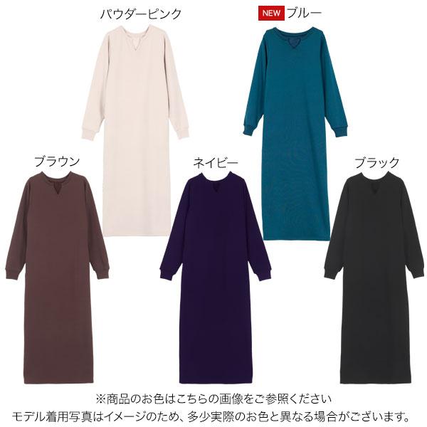 ワンピース レディース 40代 50代 長袖 裏起毛 裏シャギー ロングワンピース キーネック ぬく盛り 冬 E3435送料無料