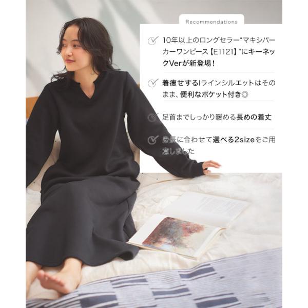 [ ぬく盛り ] 選べる丈 キーネックマキシワンピース