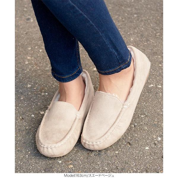 モカシン レディース ファー スエード ファー あったか 防寒 秋冬 ローファー レディース シューズ H54H