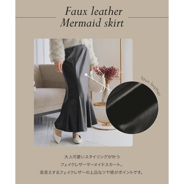大人可愛いスタイリングが叶うフェイクレザーマーメイドスカート。